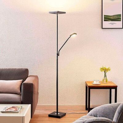 Czarna lampa podłogowa LED Sumani od Lindby to idealne rozwiązanie oświetleniowe do sypialni, łączące styl i funkcjonalność w elegancki sposób. Czarne wykończenie dodaje nowoczesnego akcentu do każdego wystroju i tworzy przytulną atmosferę. Dzięki wbudowanej technologii LED ta lampa podłogowa zapewnia komfortowe oświetlenie i energooszczędne działanie. Regulowane ramię i głowica ułatwiają precyzyjne skierowanie światła, idealne do czytania lub relaksu w łóżku. Lampa podłogowa LED Sumani jest również łatwa do zintegrowania z wnętrzem sypialni dzięki stylowemu wzornictwu i funkcjonalności.