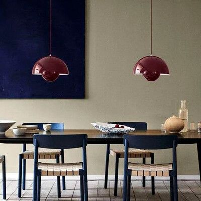 Big Flowerpot VP2 od &Tradition to lampa wisząca lub sufitowa, która z pewnością może również pełnić rolę lampy do sypialni. Lampa sufitowa może zapewnić "jasne" światło, np. podczas ubierania się, a ten czerwony urok pasuje do sypialni z czerwonym motywem kolorystycznym. Dostępne również w kolorze czarnym i białym.