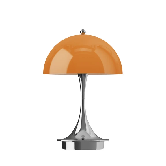 Panthella 160 Portable Original – lampa stołowa LED z zasilaniem akumulatorowym do użytku wewnątrz i na zewnątrz, klosz opalowo-pomarańczowy